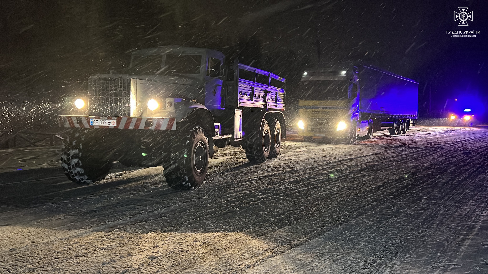 У зв’язку з погіршенням погодних умов увечері 7 січня буковинські рятувальники залучались до надання допомоги водіям вантажівок, котрі потрапили у снігові замети на автодорозі Н03 поблизу села Рингач Новоселицької територіальної громади.