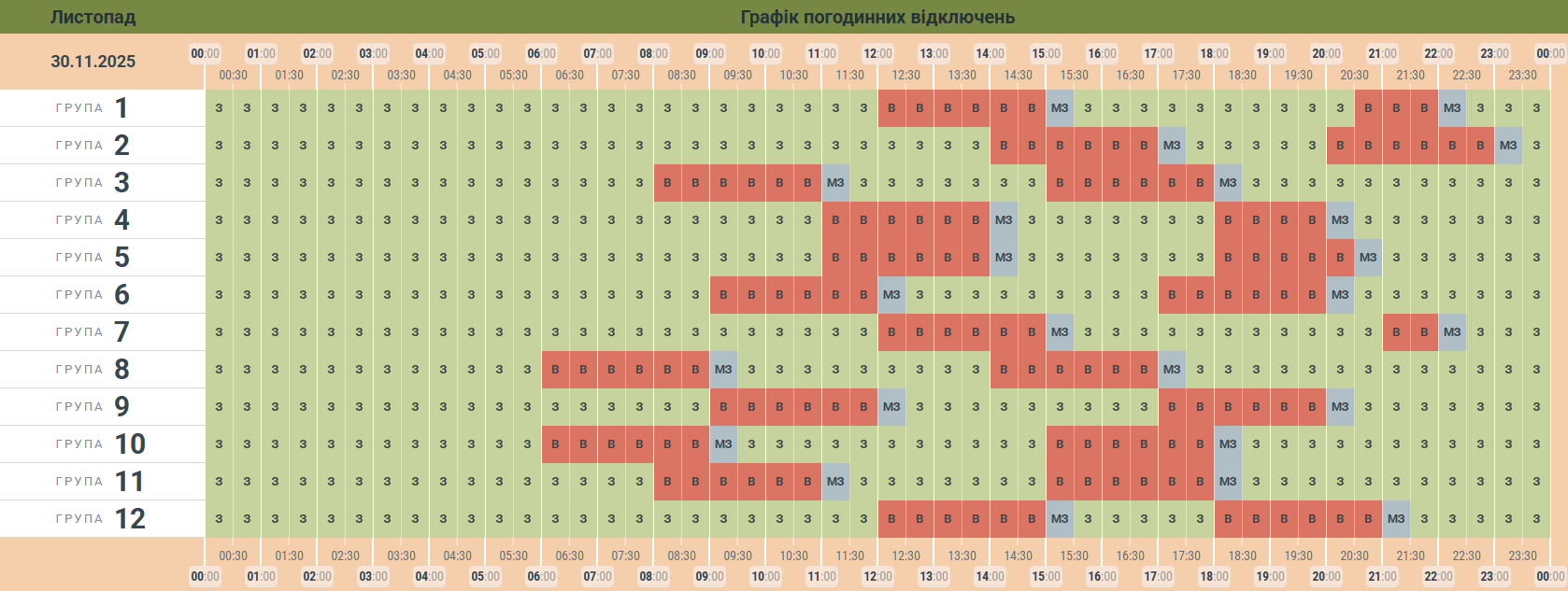 Чернівціобленерго опублікувало графік відключення електроенергії на 30 листопада