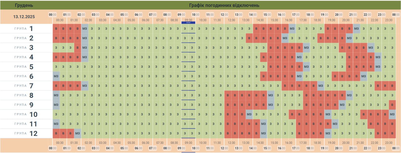 Орієнтовний графік заживлення для груп споживачів • 13.12.2025