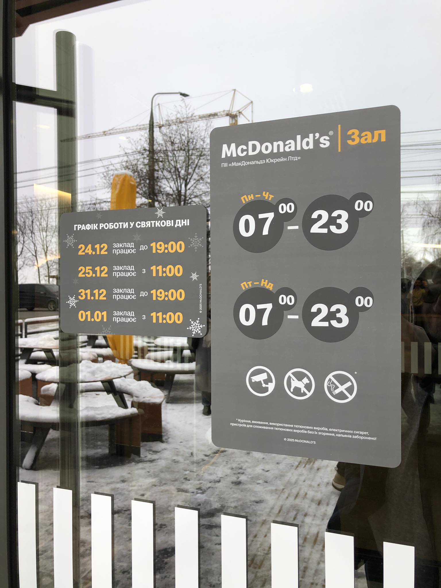 - сервіс «МакДелівері» — з 7:00 до 22:00;