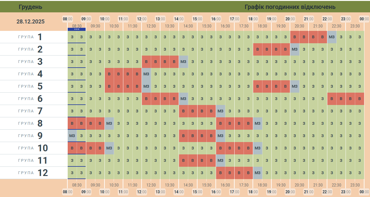Чернівціобленерго опублікувало графік заживлення побутових споживачів електроенергії на 28 грудня