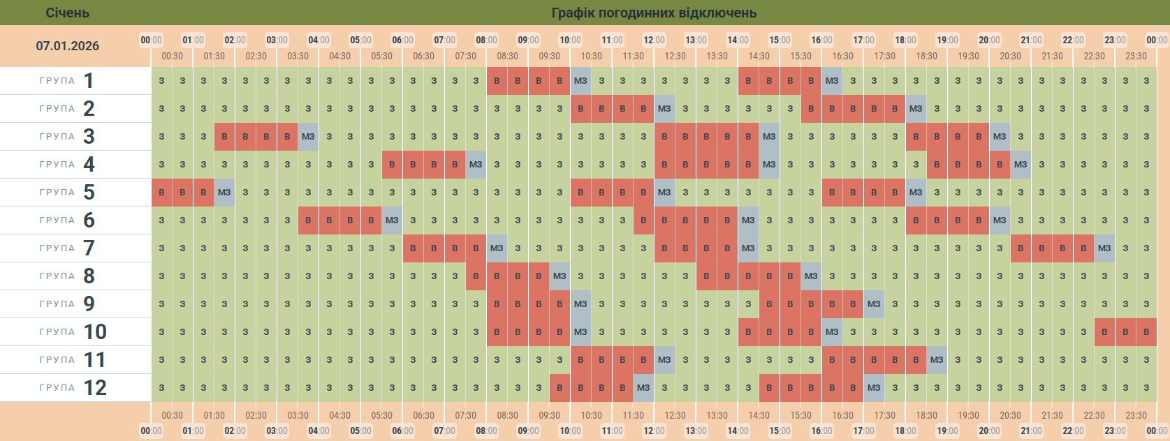 Чернівціобленерго опублікувало графік заживлення побутових споживачів електроенергії на 7 січня