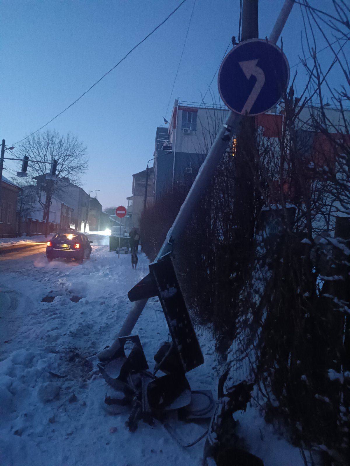 На перехресті вулиць Л. Кобилиці – Є. Ярошинської внаслідок дорожньо-транспортної пригоди було збито світлофор разом з опорою.