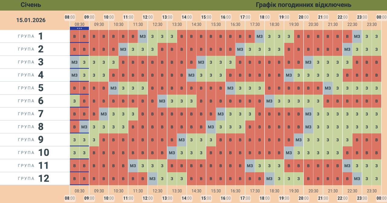 Орієнтовний графік заживлення для груп споживачів • 15.01.2026