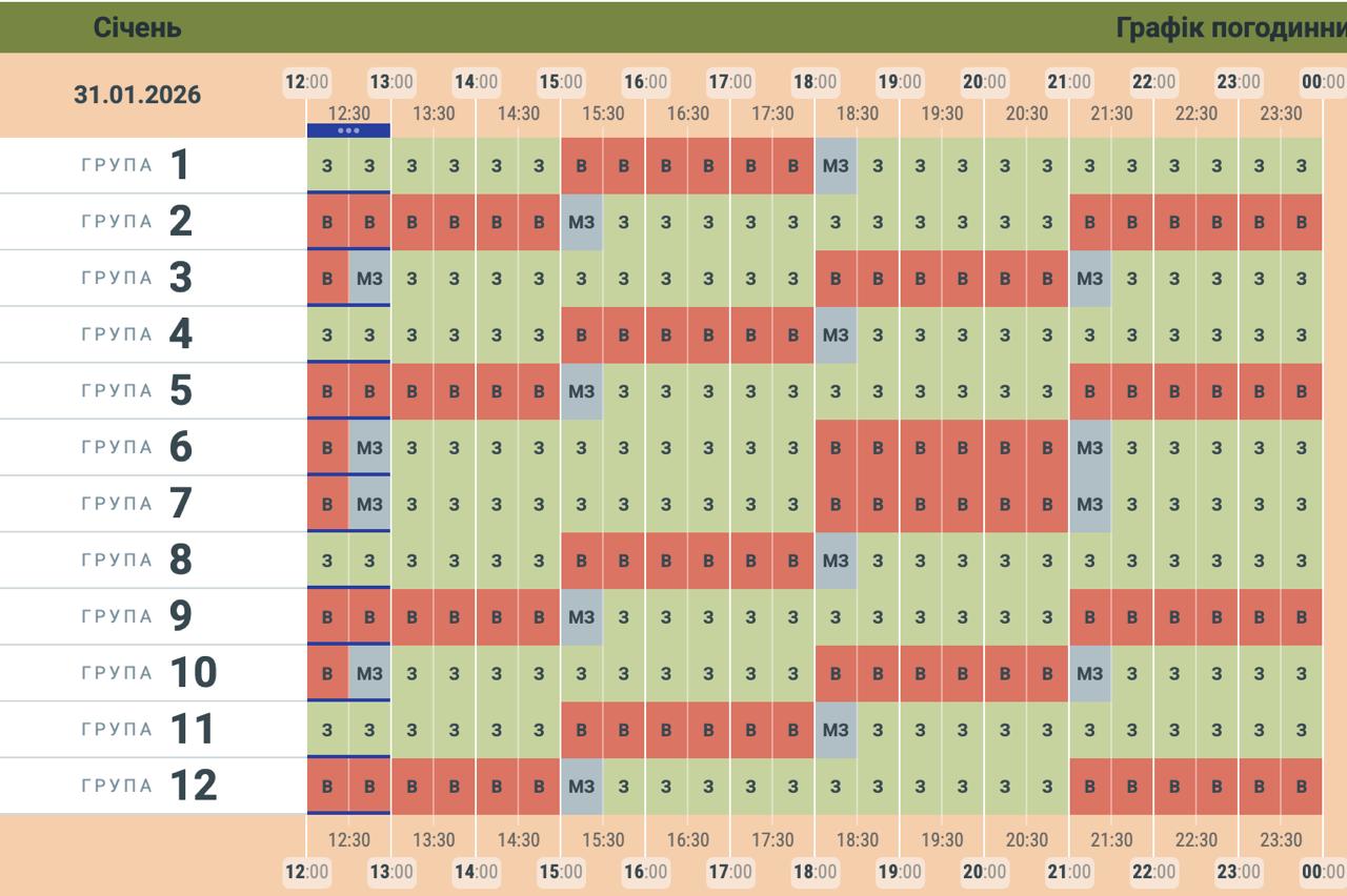 ⚡️ Орієнтовний графік заживлення для груп споживачів • 31.01.2026