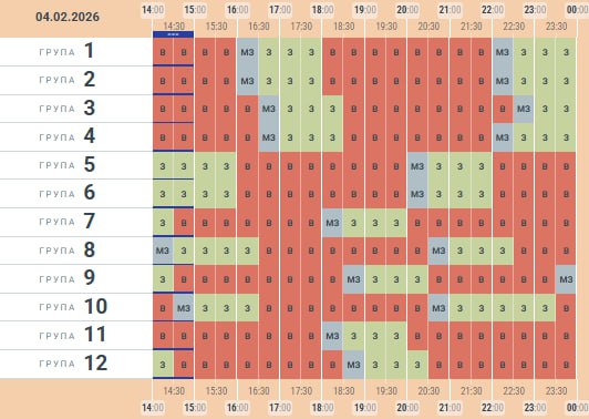 ⚡️ Орієнтовний графік заживлення для груп споживачів • 04.02.2026