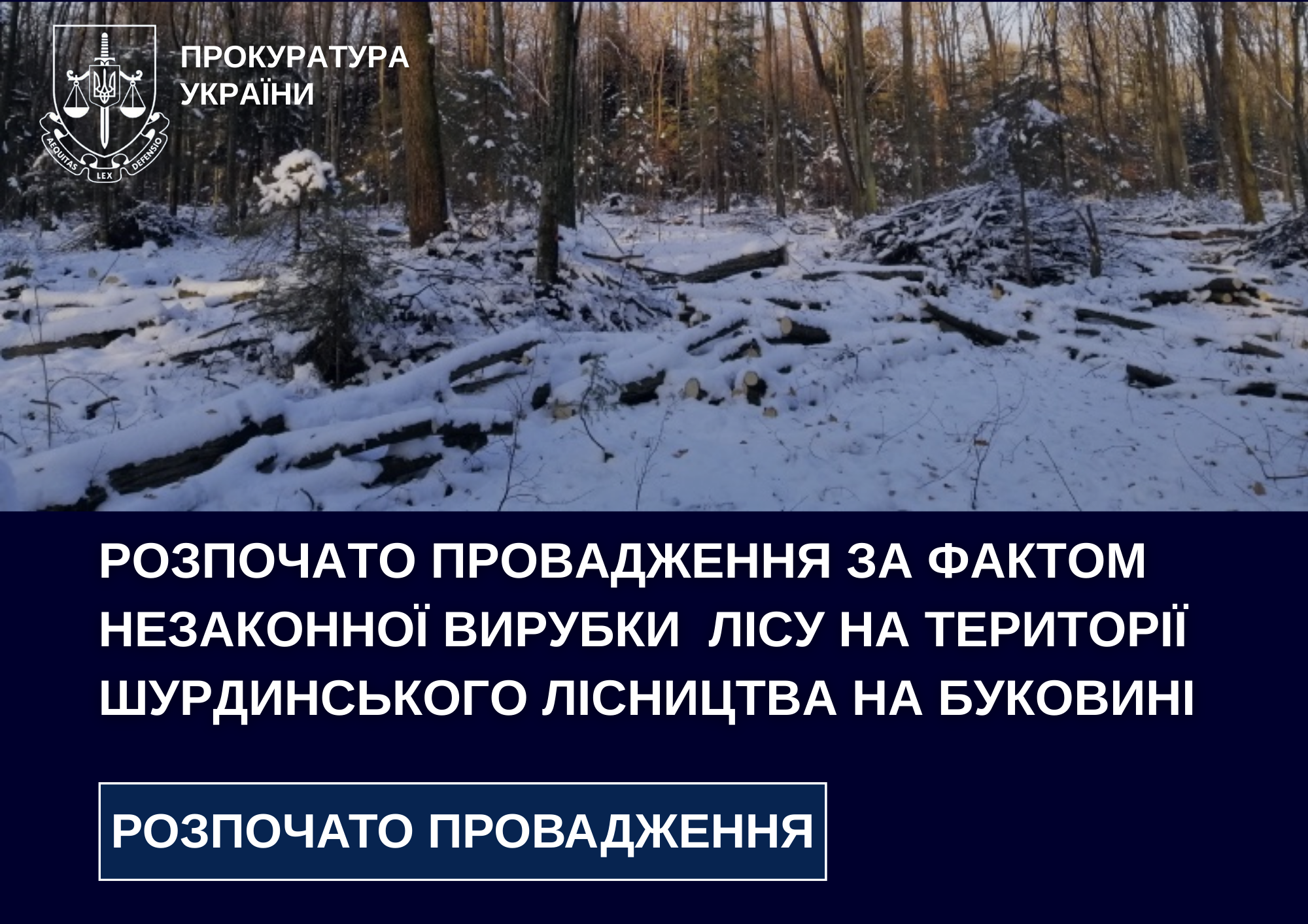 Спеціалізована екологічна прокуратура Чернівецької обласної прокуратури здійснює процесуальне керівництво у кримінальному провадженні розпочатому через незаконну вирубку лісу у Путильському надлісництві філії «Подільський лісовий офіс».