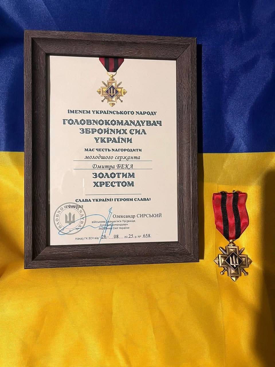 Молодший сержант Дмитро Бек із Сторожинецької громади удостоївся почесної відзнаки Головнокомандувача Збройні сили України «Золотий Хрест».