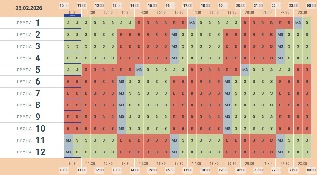 ⚡ Орієнтовний графік заживлення на 26.02.2026