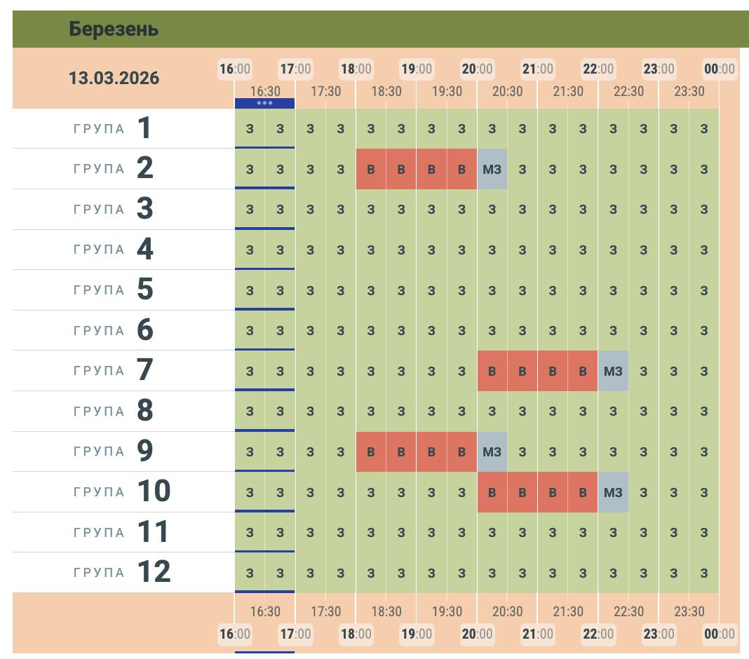 ⚡ Орієнтовний графік заживлення на 13.03.2026