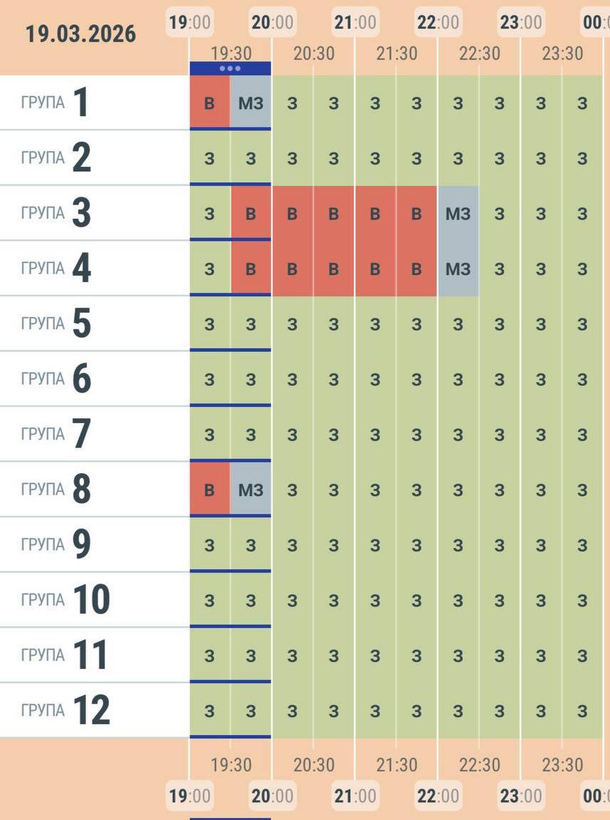 ⚡ Орієнтовний графік заживлення на 19.03.2026