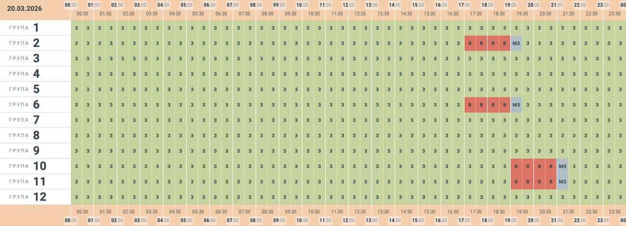 Орієнтовний графік заживлення на 20.03.2026