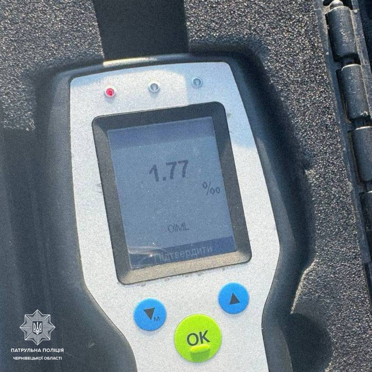 Чоловік погодився пройти огляд у лікаря-нарколога. Результат показав 1,77 проміле алкоголю в крові, що більш ніж у вісім разів перевищує допустиму норму.