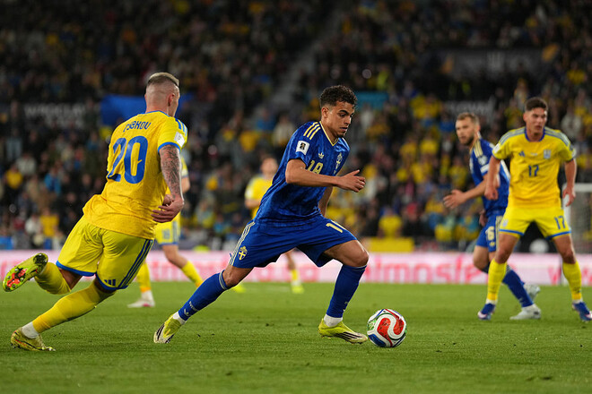 Шведи відкрили рахунок вже на 6-й хвилині матчу — Віктор Дьокереш відгукнувся на простріл в штрафний майданчик та переправив м’яч у ворота. Вже в другому таймі нападник оформив хет-трик, спочатку відігравши Забарного, а потім реалізувавши пенальті.