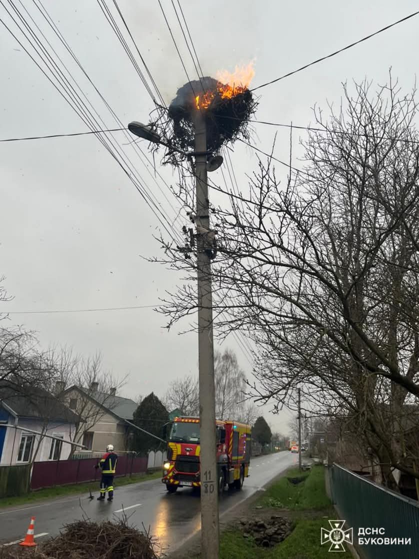 У Чернівцях рятувальники ліквідували загорання електропроводів на електроопорі та гнізда лелеки.