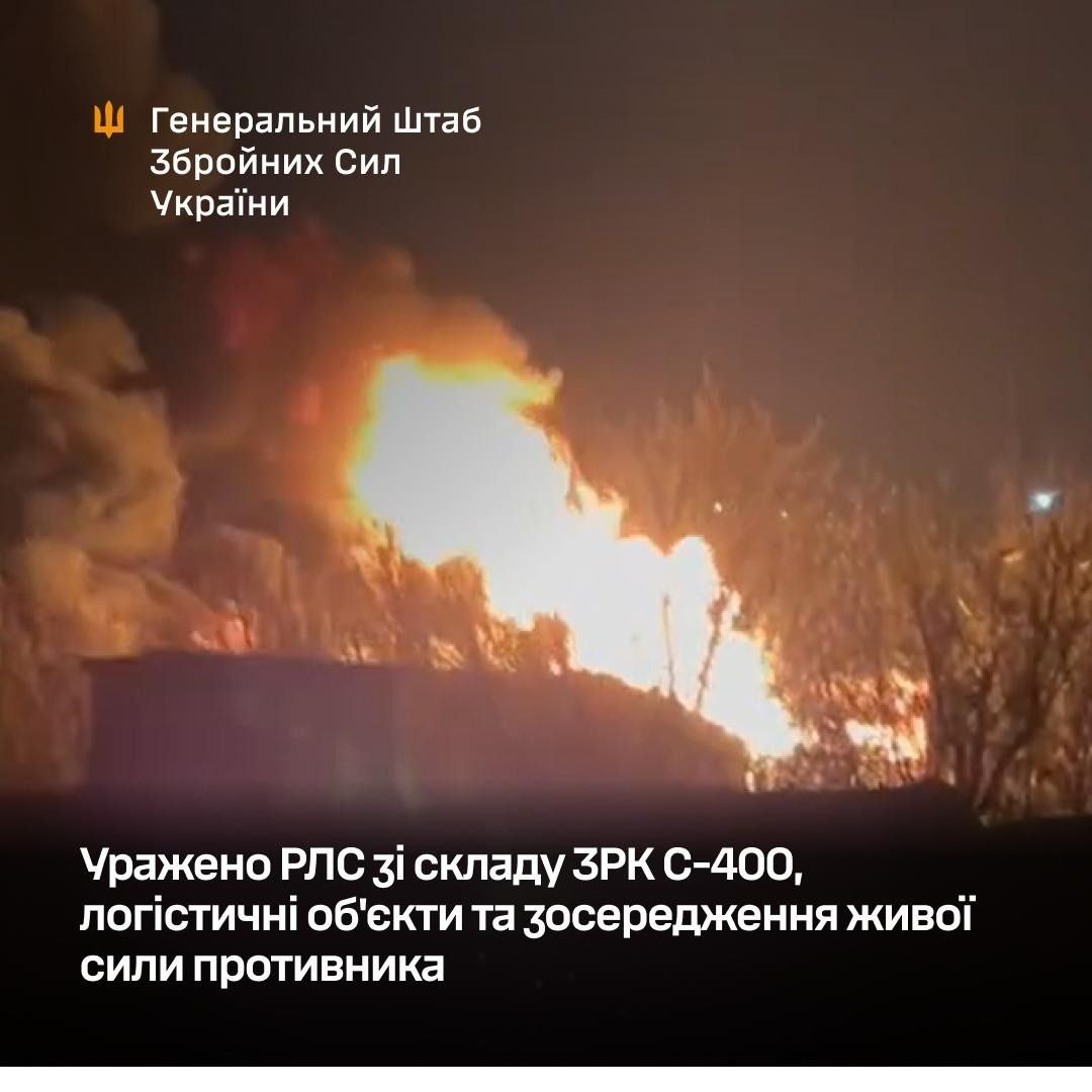 Так, уражено радіолокаційну станцію 96Л6 із складу зенітного ракетного комплексу “С-400” (Красногірське, ТОТ Запорізької обл.) та радіолокаційну станцію “Небо-СВУ” (Гвардійське, ТОТ АР Крим).
