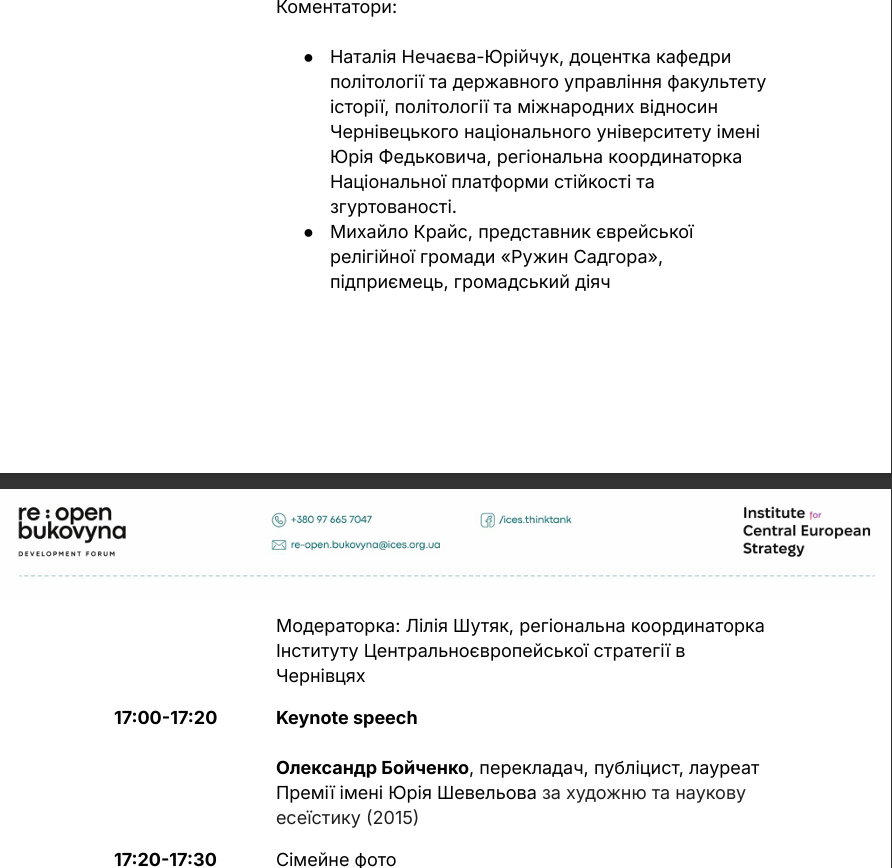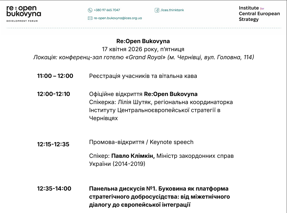 У Чернівцях 17 квітня пройде форум ідей та рішень «Re:Open Bukovyna». Захід відбудеться з 11:00 до 17:30 у конференц-залі готелю Grand Royal.